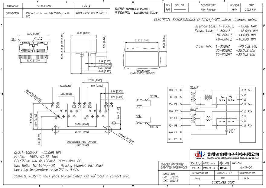 RJ45沉板&贴片带滤波器