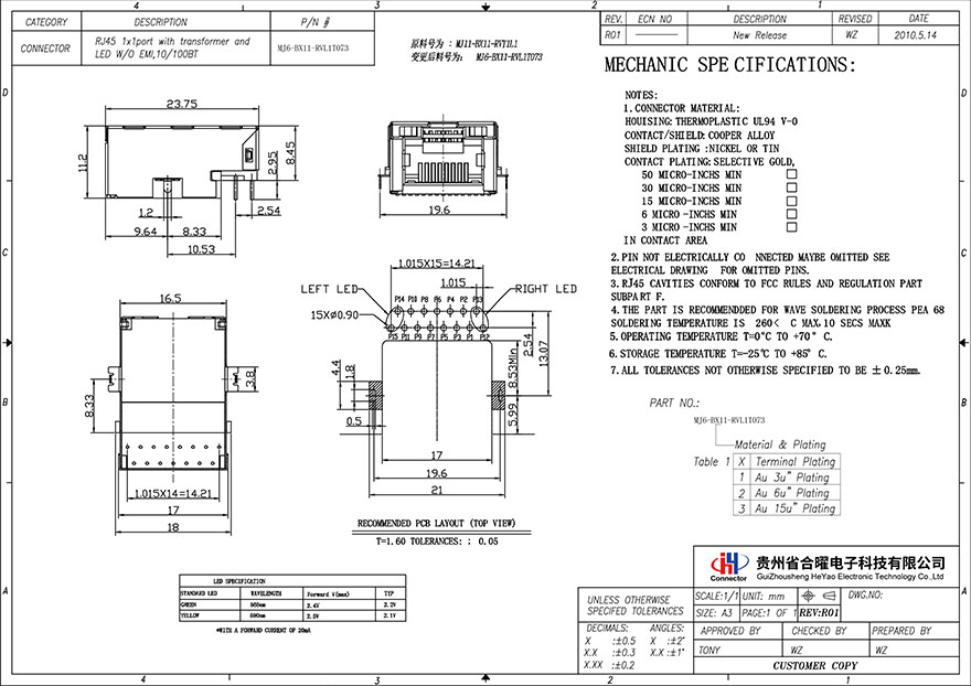 MJ6-BX11-RVL1T073 沉板DIP带灯H=8.45